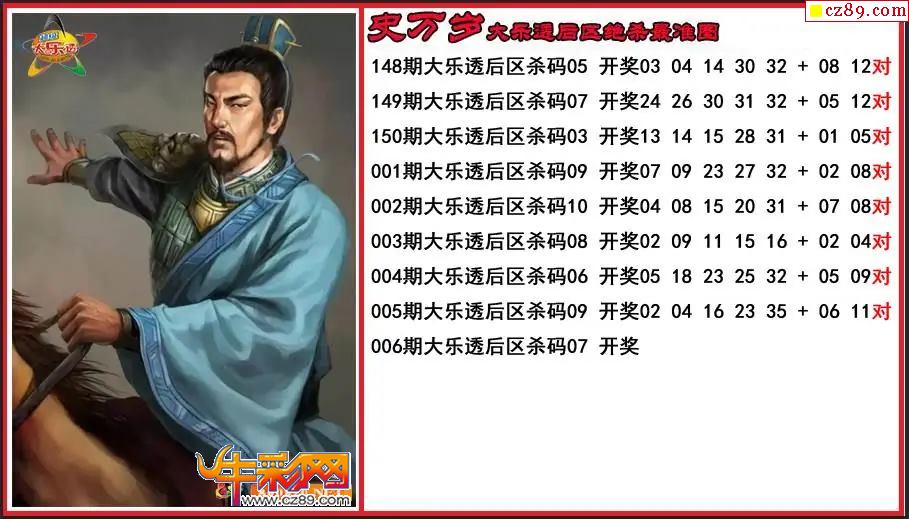 > 大乐透006期史万岁后区绝杀最准图